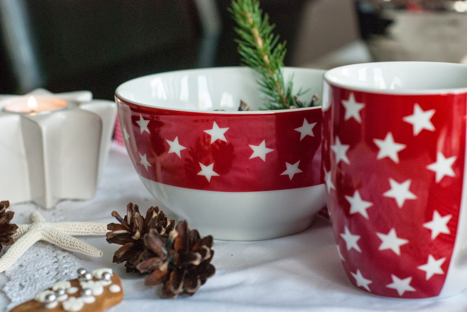 Zapraszam Was do obejrzenia kadrów z dekoracji stołu akcentami świątecznymi. Miałam to szczęście, że Netto jest niedaleko i dostałam z miesiąc temu super kubki i miseczki. Idealnie nadają się do zimowo-świątecznej czerwonej stylizacji.