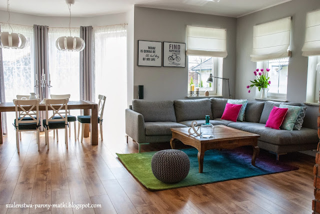 OdpowiedzUsuńtęczowy bardzo ożywia wnętrze, fajne połączenie z poduszkami, jednak też zostałabym przy szarym :)