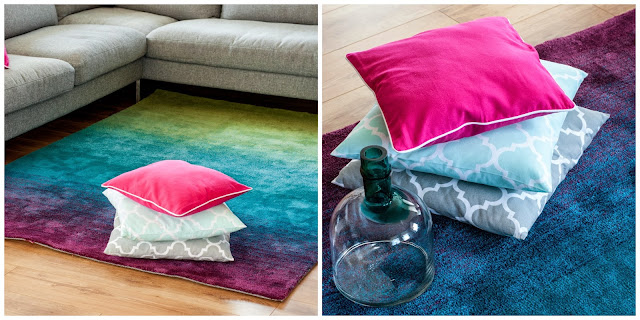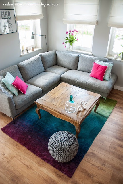 OdpowiedzUsuńJakie piękne poszewki na poduszki! Jest i moja ukochana mięta! Gdzie je Pani zakupiła? Dywan wybrałabym szary, ale ten kolorowy też jest piękny.