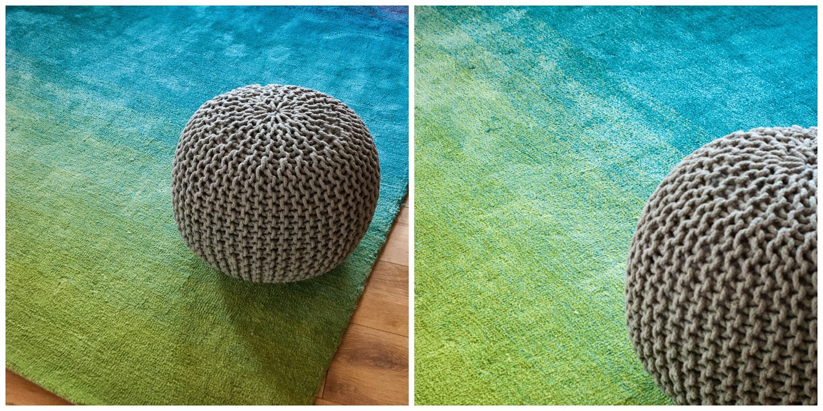 Celowo też obróciłam ten dywan, aby pokazać Wam różne kąty patrzenia na pomieszczenie w zależności od zmiany koloru, zarówno od strony fioletowej, a w drugiej odsłonie zielonej.