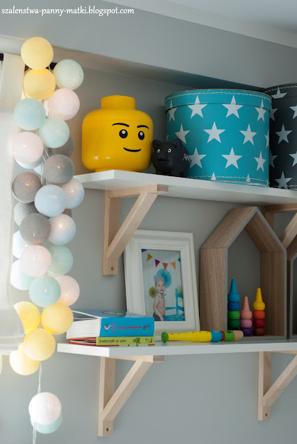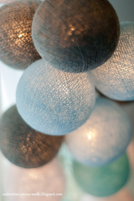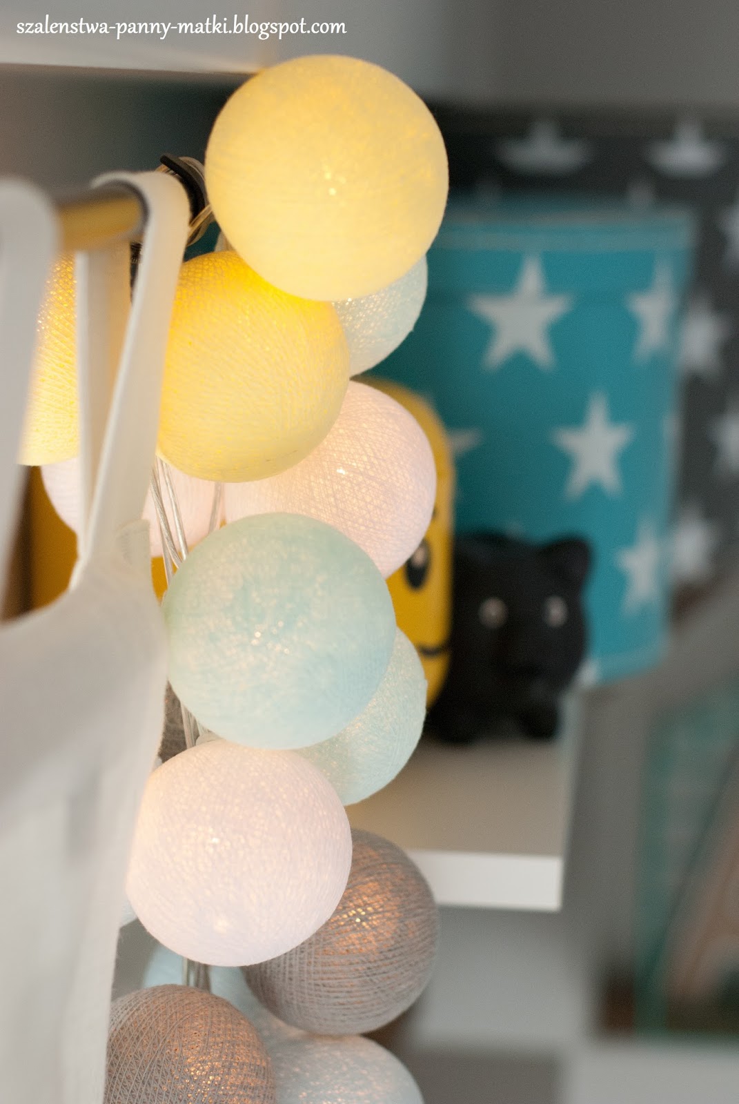 Cotton Ball Lights podarowało mi do tego pokoju zestaw CBL. 35 kul, które sama skomponowałam, dostosowując kolory do wymogów pokoju Banderasiątka.