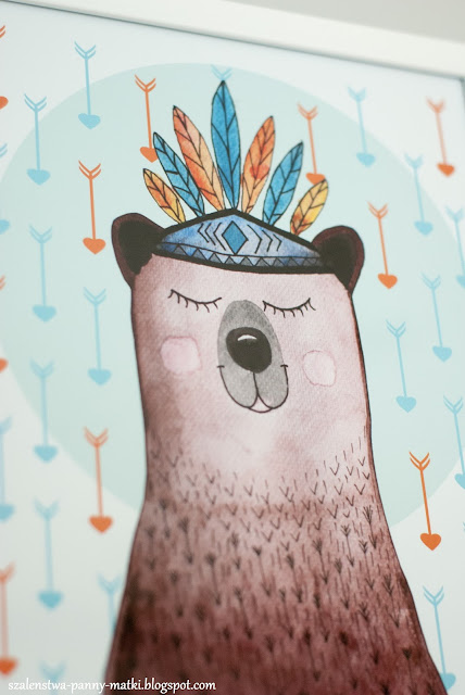 Miś INDIANIN to efekt poszukiwania ciekaych rzeczy na Dawandzie, po nitce do kłębka trafiłam do sklepu eclecticliving i tam zakupiłam plakat misia, aby póżniej oprawić go w ramkę z Castoramy.