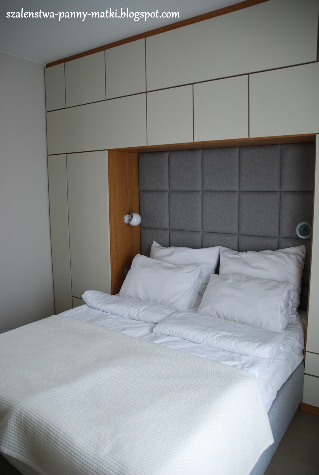 Sypialnia to niewielkie pomieszczenie, ale jakże perfekcyjnie rozplanowane. To masa szafek stanowiących zabudowę.