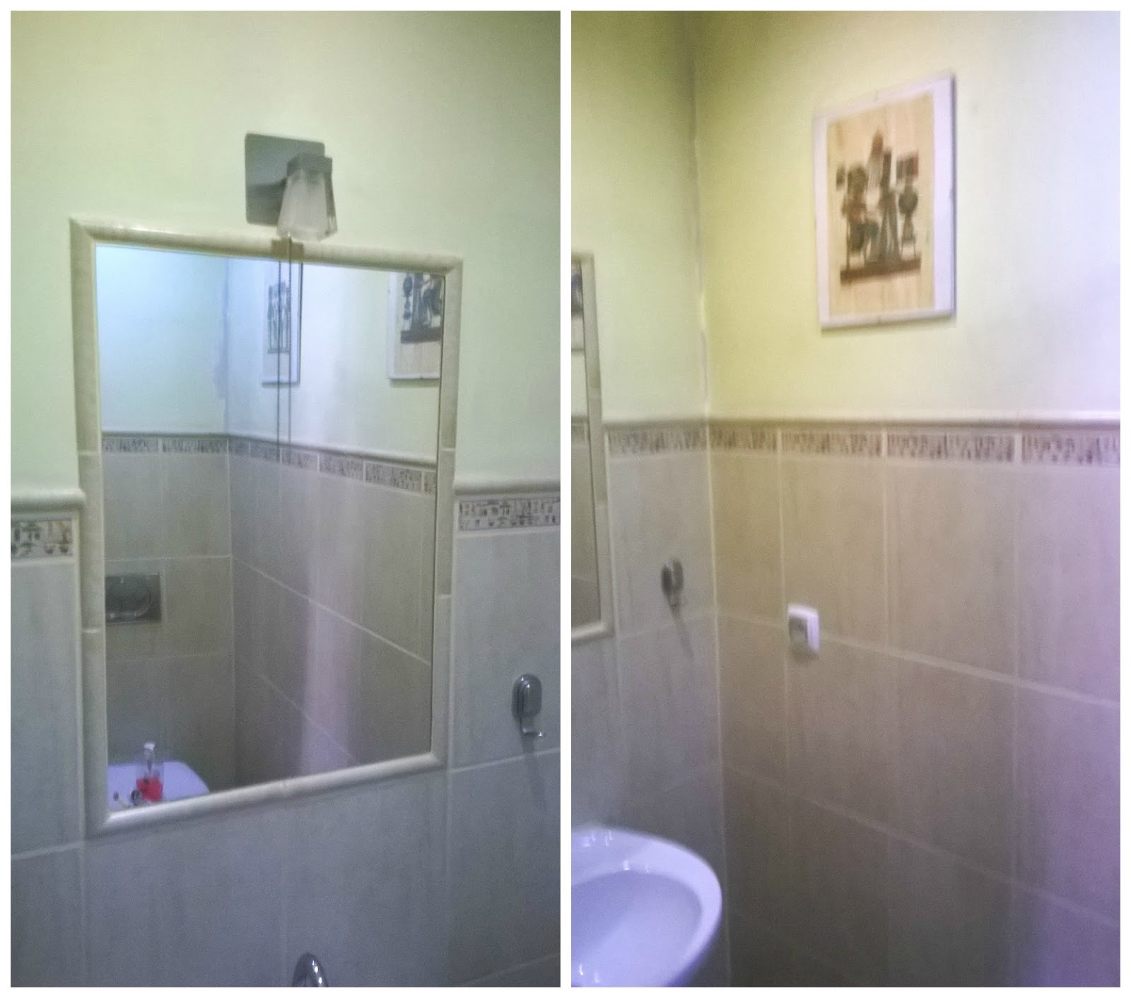 Problemem było, ograniczenie tego, iż obecne lustro było obłożone płytką, więc zastanawiałam się, że może trzeba będzie poszukać listwy sztukateryjnej i przykleić na tą z płytek i pomalować ją na czarno. Magda miała jeszcze lepszy pomysł, mianowicie połączyła ramę do obrazu zakupioną w IKEA z zdolnym szklarzem, który wykonał lustro na wymiar.