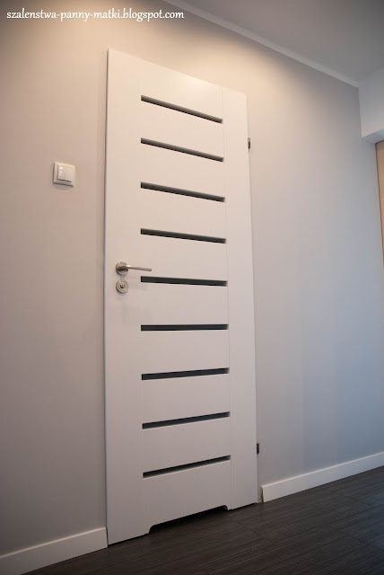 Drzwi były w kolorze białym,do toalety pełne, do pozostałych pomieszczeń częściowo przeszklone. To, aż niewiarygodne, ale model tych drzwi zapewne zmodyfikowany w porównaniu z tymi pierwszymi, które są nadal w mieszkaniu moich Rodziców jest na rynku ponad 20 lat.