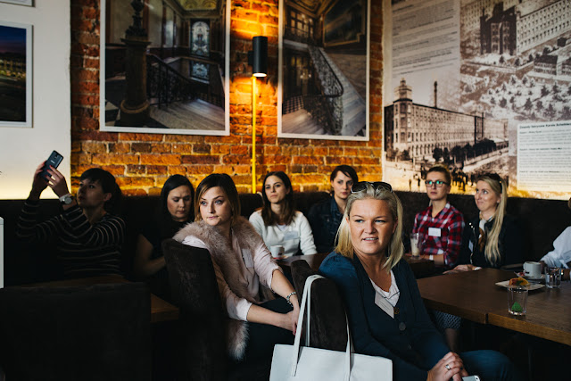 Mimo, że też miałam najbliżej na spotkanie, ponieważ spotkanie odbywało się w Łodzi, czyli pod moim nosem spóźniłam się, bo jechałam i jechałam i jechałam w mega korku.... Prawdą jest, że w pierwszej kolejności gdy przybyłam do CafeLoft na Tymienieckiego 25 myślałam tylko o tym jak strasznie nienawidzę samej siebie za to, że ubrałam 10 cm obcas, a...nie pomyśłałam, że słowo "zwiedzanie"faktycznie oznacza "zwiedzanie". W konsekwencji but mnie obtarł i następnego dnia jedynie nadawałam się do noszenia adidasów.