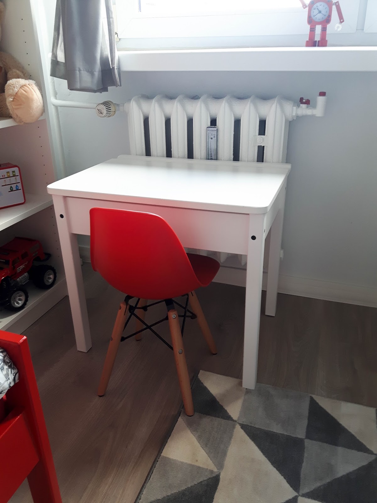 Czerwone krzesełko pochodzi z allegro, biureczko to zestaw STUVA z IKEA- po otrzymaniu tych zdjęć sama kupiłam takie mojemu Przedszkolakowi.
