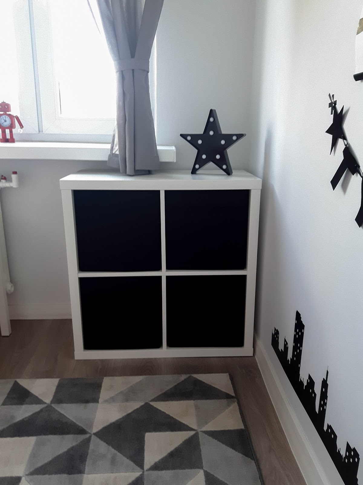 A niestety w tym pokoju pionowy TROFAST odpadał i gdy tak myślałam i myślałam przyszła do głowy mi alternatywa wiszącej opcji tego regału, który zgodnie ze swoimi rozmiarami idealnie wpasować mógłby się...pomiędzy kaloryfer a ścianę, co dzięki temu układowi wykorzysta przestrzeń, nie zabierając Tymkowi miejsca do zabawy na podłodze.