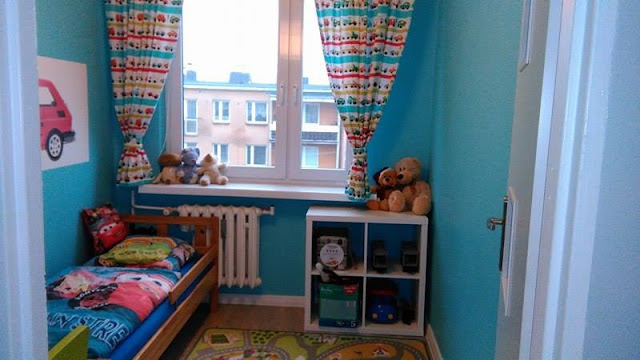 Chciałyśmy z Marysią-Mamą Tymka pozbyć się tego smerfowego koloru za wszelką cenę, bo niestety ale on pomniejszał i tak malutkie pomieszczenie.