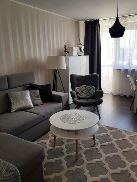 Uważam, że warto było czekać. Ostateczna realizacja tego salonu szczerze mi się podoba. Jestem zadowolona ze spójności i wyboru detali.