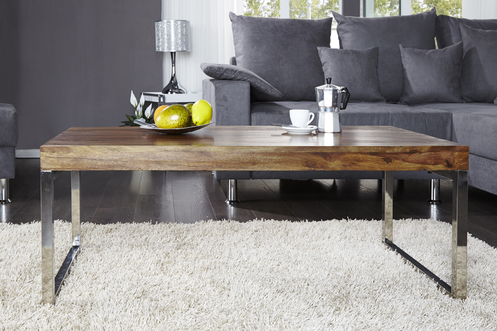 kawowy z oryginalnym designem. Stelaż wykonany z metalu- niklowany, blat gruby