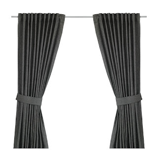 Ciemne zasłony widoczne na zdjęciach to zasłona INGERTz IKEA.