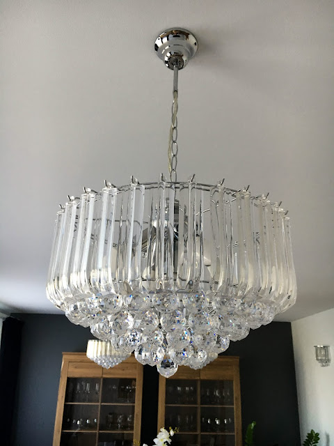 na stołem oraz jeden przesunięty nad miejsce przy stoliku kawowym.